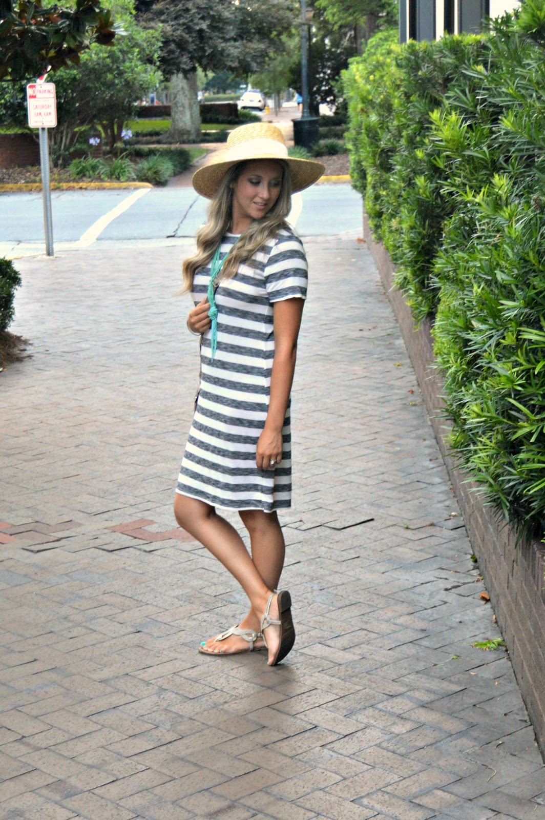 I am writing to you today from inside my nice and cool air conditioned house. Mainly because I refuse to be outside right now. It has been over 100 degrees this entire week and teaching summer school with kids who can't go outside because of how hot it is is not fun....at all! Plus, I woke up with the worst head cold. So not only is it hotter than a toasted cheeser (if you don't know that movie reference we are not friends) but I can't breathe out of my nose, perfect. I was waiting to post this one because I have apparently been on a stripe kick lately, but day after day I have stepped outside and said "nope". The only place you will catch me at is the pool or inside. I like hot but this is HAWT like no other. I mean instant sweat and who wants to get all dressed up to have their face running off.