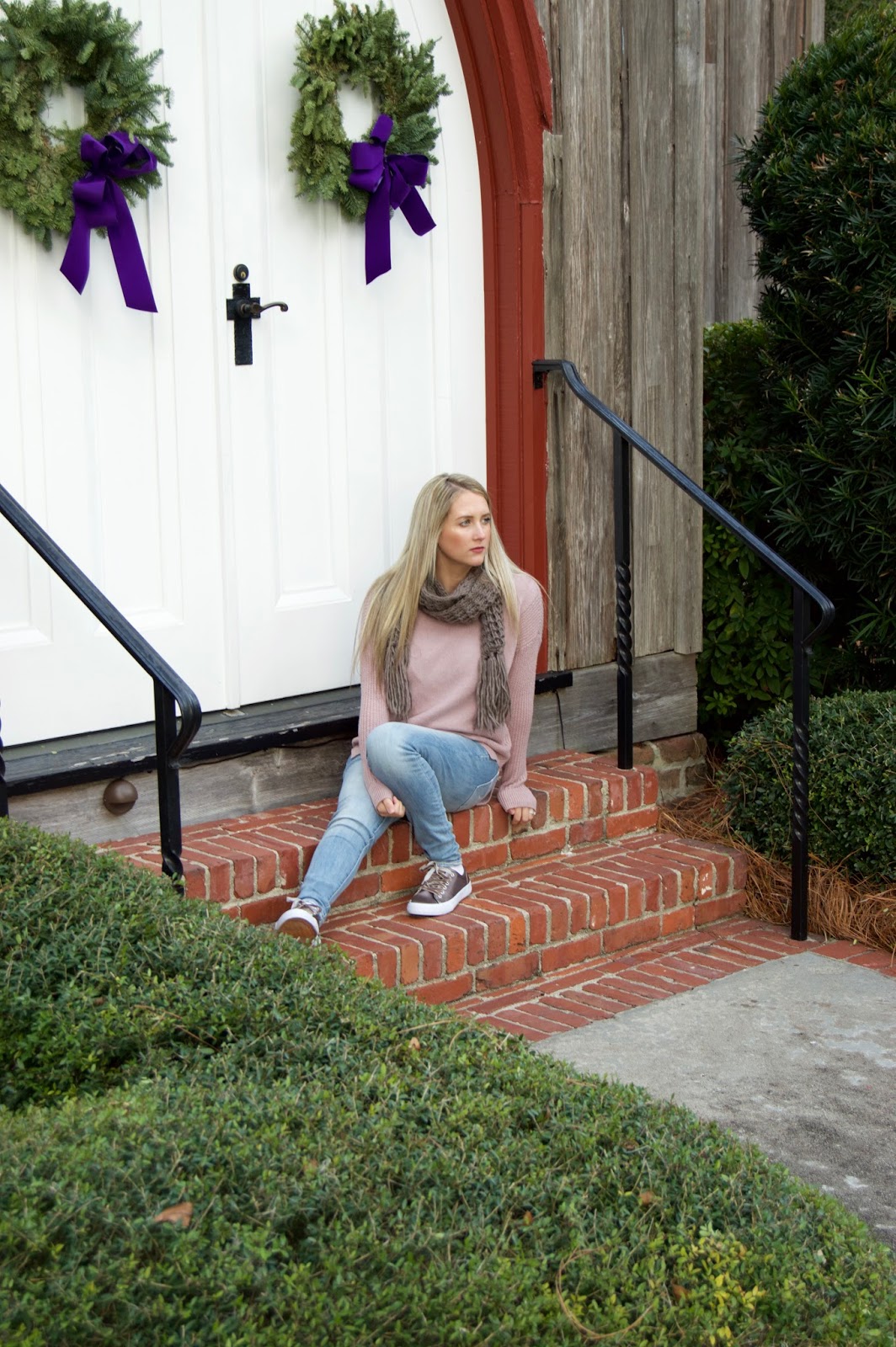 I'm also super excited because everything in my post is still available ha, the little things. No, but I feel like this time of year, nothing stays in stock for long. These shoes were not something I was looking for, but happened upon and instantly fell in love. They are simple, girly and the best part--the laces are velvet. ❤ Just take my money. Oh, and this sweater is the perfect length. I don't know about you but I am getting too old for cropped tops. Mainly because I don't really find them flattering on me anymore, but that is what's in style and everywhere. I can't even begin to tell you how many sweaters I have tried on this Winter and immediately said "NOPE" because it was short and wide. Then I found this beauty. Soft, lose fitting and longgggg. Yayy for length! Plus, it doesn't exactly hurt that it's in my new favorite color. If I didn't have some kind of self control I would easily have 10 pieces of clothing in this color just from Black Friday shopping. Instead, I bought stuff in my other and always favorite color, hunter green.